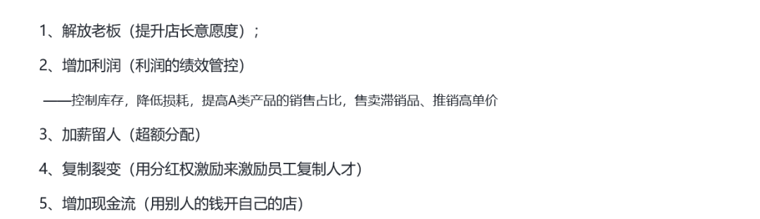 总部主要是收益:品牌的溢价,整合上下游、产品、培训加盟费用等。
