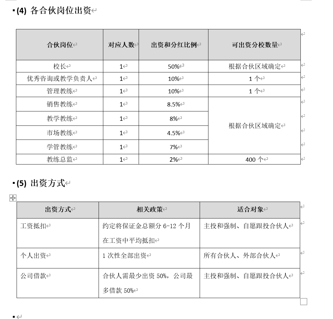 分红权:总部(最低为0%) 合伙人(最高为100%)